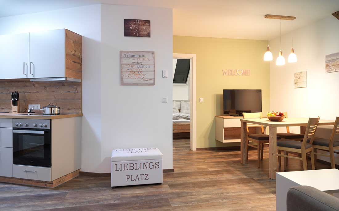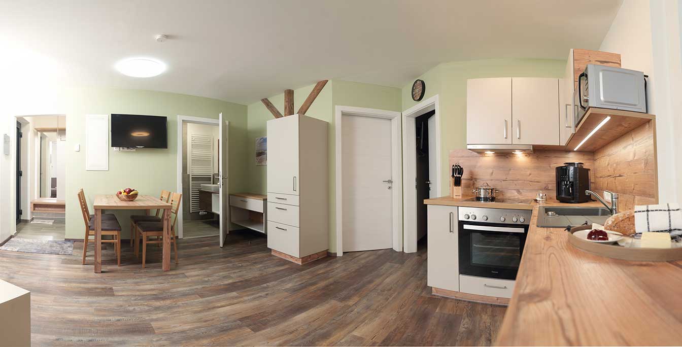 2019 haben wir das bestehende Bauernhaus ausgebaut und erweitert sodass wir unseren Gästen nun 4 klimatisierte Appartements in der Göße von durchschnittlich 60m² zum Erholen anbieten können. Außerdem steht eine geräumige überdachte Terrasse zum Frühstücken und Chillen im Freien zur Verfügung. Ein Lieferservice für Brötchen und andere Lebensmittel wird angeboten. Im Garten gibt es eine Laube mit Grillmöglichkeit. Ein Gemeinschaftsraum bietet Platz für gemeinsame Aktivitäten, zum Feiern, Spielen und Plaudern.